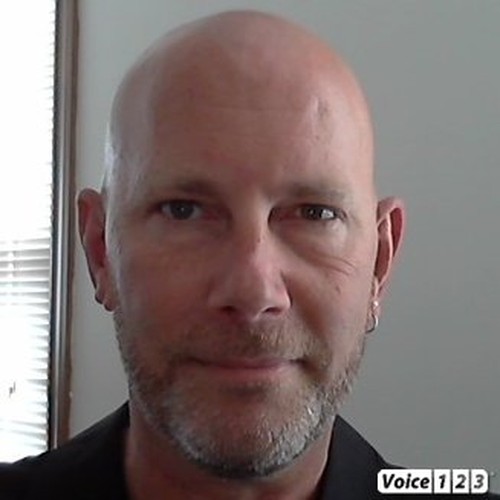 Warm, friendly, mid-range to deep strong voice